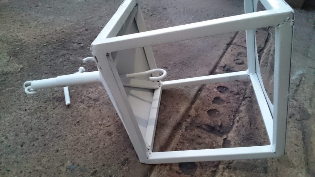 The foldable stone dust frame it is easy to carry and load to working area where it must be placed \ Hang up. it has got two articulation points and opposite to each other.